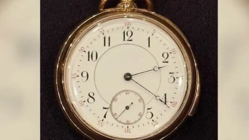 Sat od 18 karata, sa gravurom koju je uradio Žil Jirgensen, bio je u vlasništvu putnika prve klase Isidora Štrausa, koji se udavio sa još 1.500 ljudi kada je brod potonuo u aprilu 1912. godine.