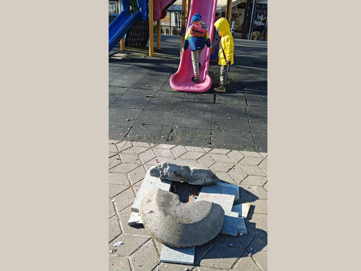 Sa stepeništa su skinute ploče koje su polupane, oštećen je i držač suncobrana iz obližnjeg kafića i sve je to bačeno na igralište. Čitav prostor je prekriven ostacima petardi i drugog pirotehničkog otpada. Mještani navode da ovo nije prvi slučaj uništavanja mobilijara, a nedavno polomljena i ljuljaška.