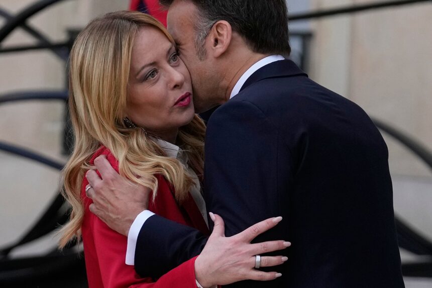 PARIZ – Francuski predsjednik Emanuel Makron dočekao je ispred Jelisejske palate u Parizu italijansku premijerku Đorđu Meloni.