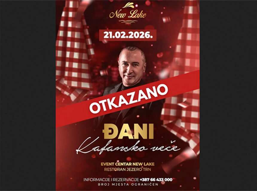 Koncert poznatog srpskog pjevača Radiše Trajkovića – Đanija, koji je bio zakazan za subotu, 21. februar 2026. godine u Event centru “New Lake” restorana “Jezero” u Trnu, otkazan je iz tehničkih razloga