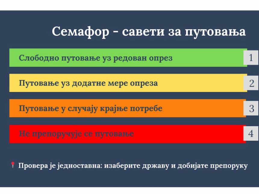 Kako bi se izbjegle neprijatnosti i potencijalni rizici, na zvaničnoj internet prezentaciji Ministarstva dostupni su ažuriran Semafor – savjeti za putovanja.