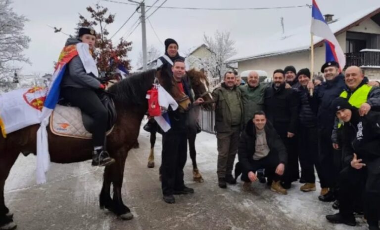 Glas grada | Banjalučki BL > Objave > Info > Društvo > (VIDEO) Vjekovni običaj oživio u Adi: Badnjak nošen na konjima